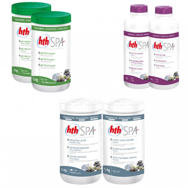 Ce kit comprend l’intégralité des produits nécessaire au traitement à l’oxyègne actif de votre spa (Pastilles, Shock, PH+, PH-, Eau éclatante et Anti-écume).
