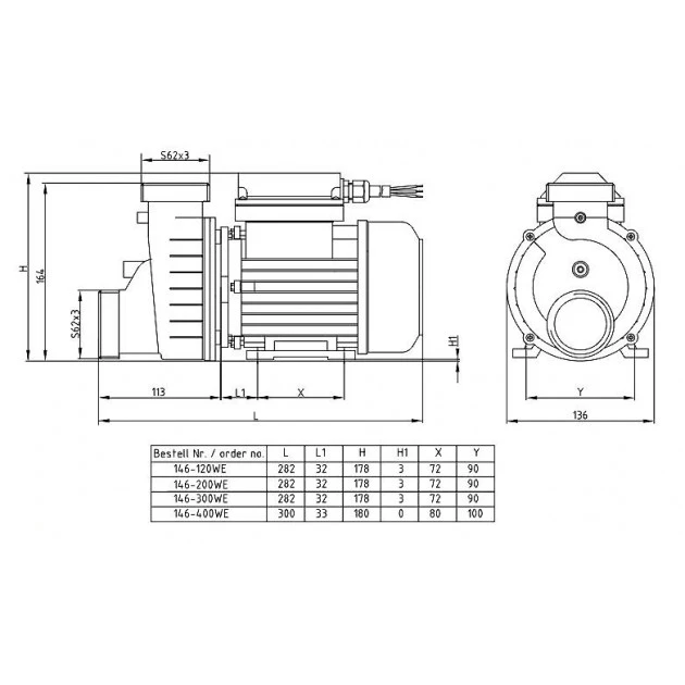 | 146-200WE | 0.27 | 200 | 210 | 282 | 220-240V 50Hz | 3.5 | IP X5 |